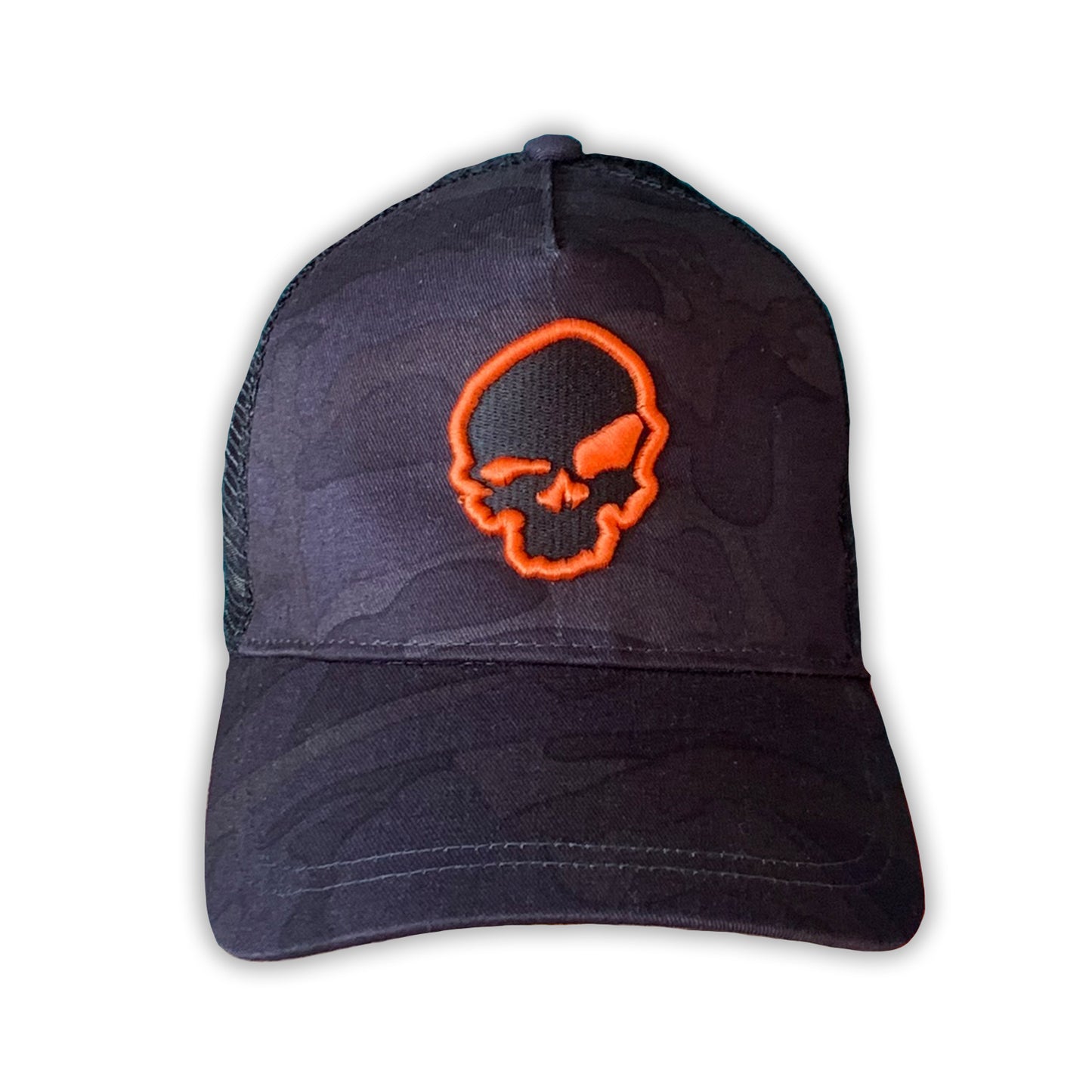 Notre logo tête de mort est brodé en 3D sur le devant de la casquette de baseball.