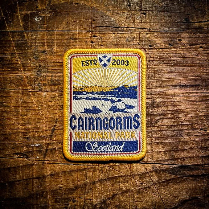 Taking a wee dram of inspiration from vintage malt whisky labels, mark your outdoor adventures in this beautiful part of the Scottish Highlands with our Cairngorms National Park woven patch.